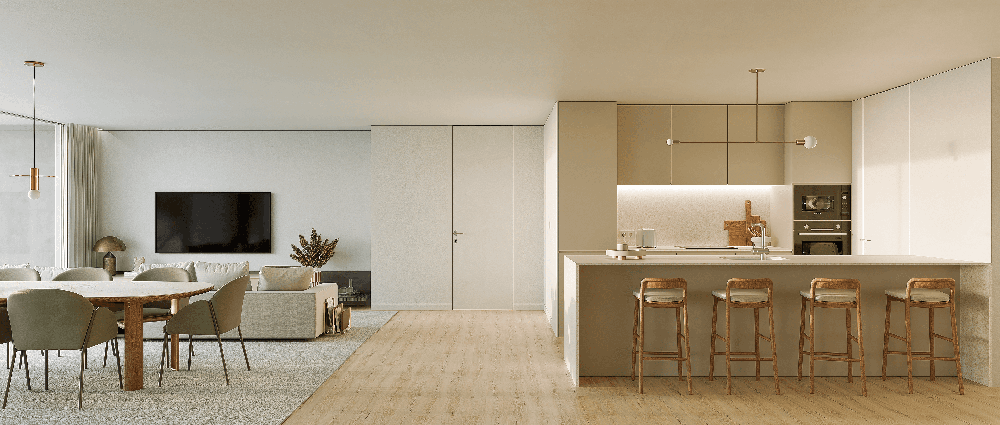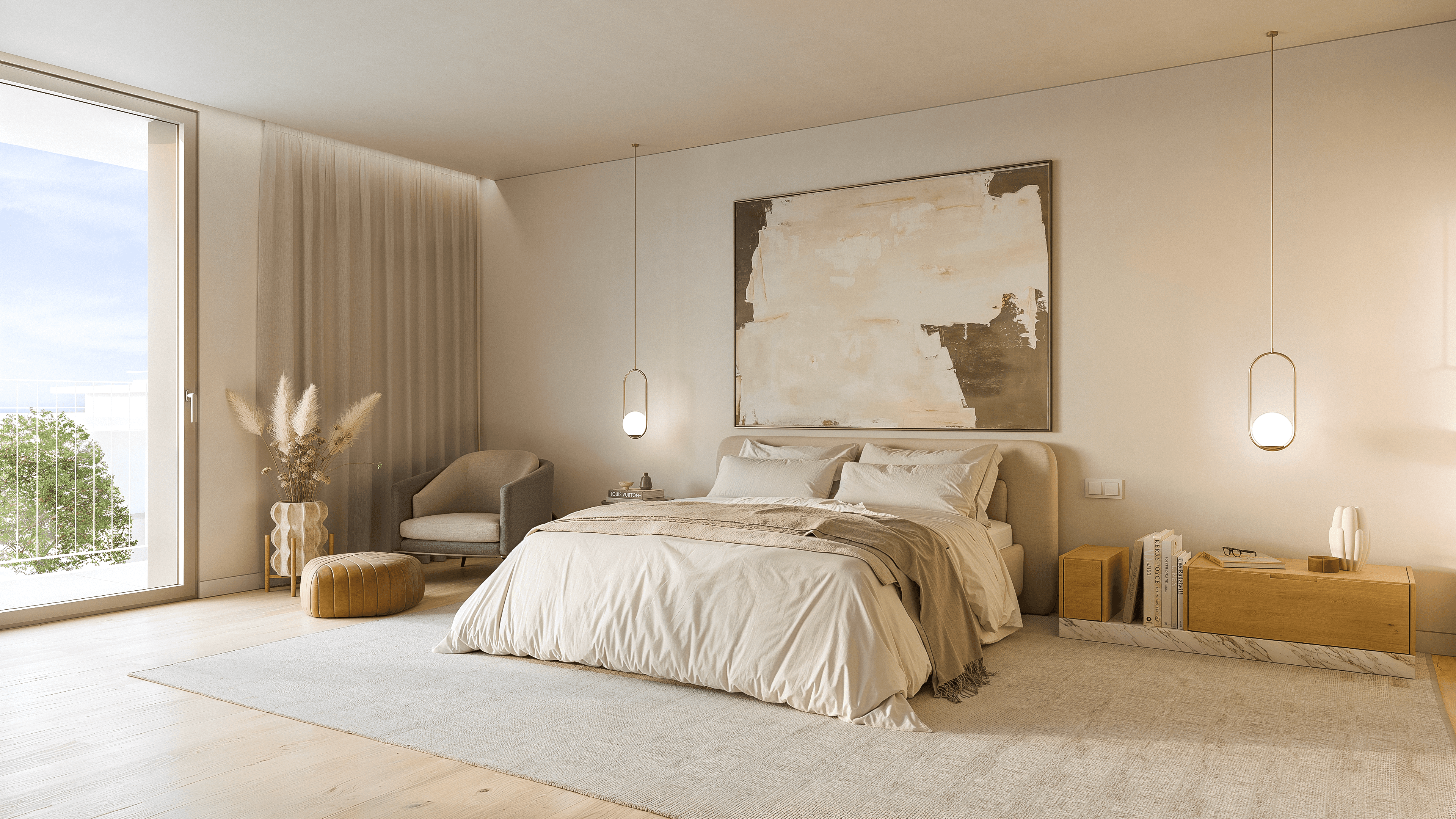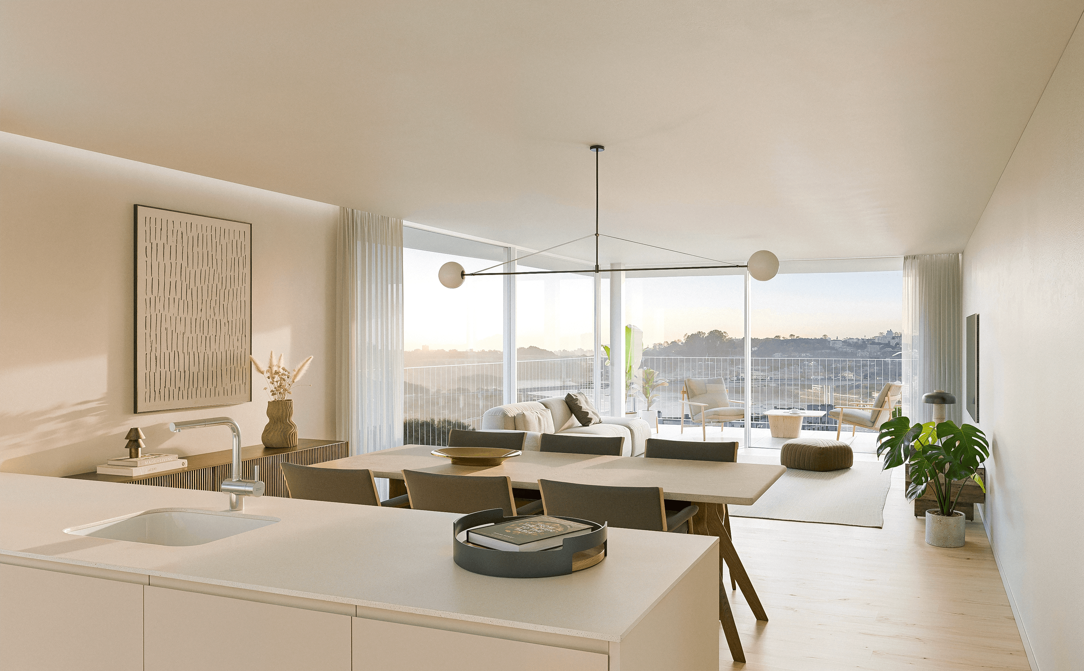 Located within the O’Rizon Living development, this three-bedroom “Horizon View” residence is designed to maximize space, light, and outdoor living. With triple orientation and expansive exterior areas, the apartment offers a level of openness and flexibility rarely found in Porto.