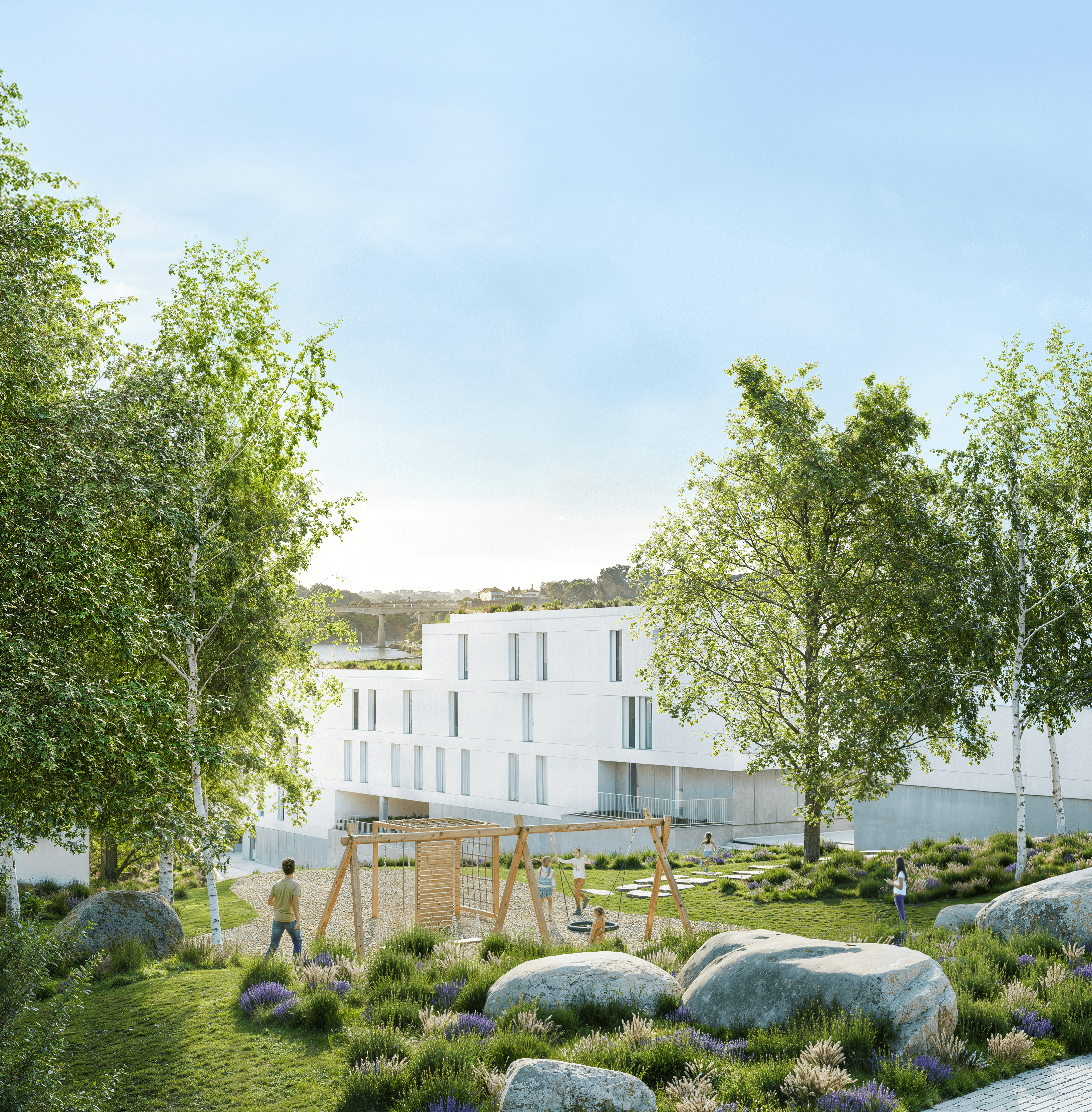 Set along the Douro River, O’Rizon Living offers a rare residential setting where natural surroundings and city proximity are carefully balanced. Located just minutes from central Porto, the development provides a शांत and private environment with open views and strong connection to the landscape.
